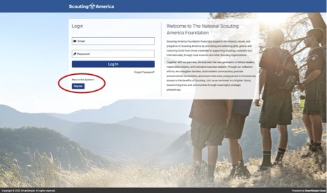 1. Click “Register” and bookmark this login page. This will be the login to return to your application. If you previously applied for a NESA scholarship, click forgot password.