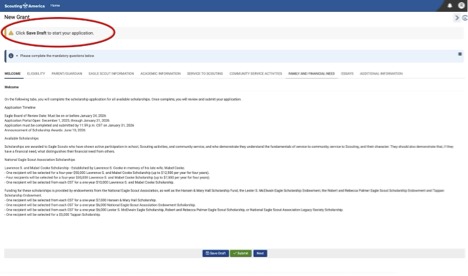 8. Click “Save Draft” to start your application.